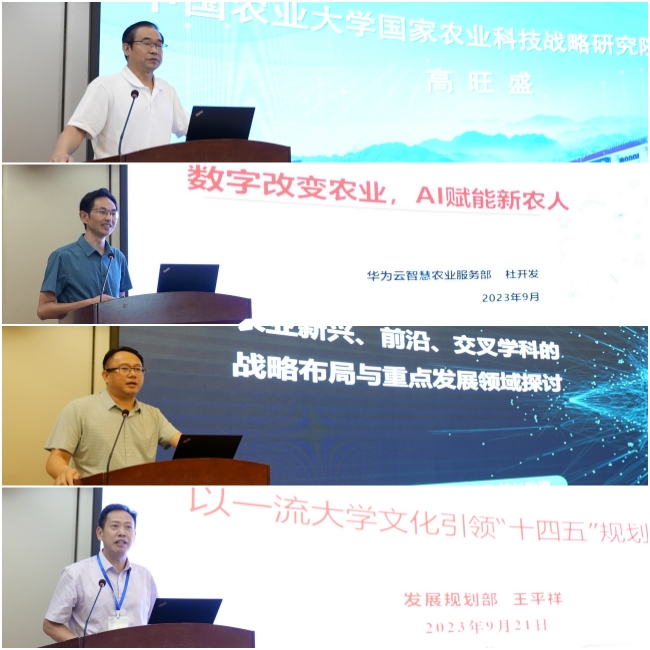 开幕式后,中国农业大学国家农业科技战略研究院院长高旺盛,华为云计算技术有限公司智慧农业顾问杜开发,中国农业大学校长助理、发展规划处处长曲瑛德作大会主旨报告。华中农业大学发展规划部部长王平祥、西北农林科技大学发展改革处副处长王军维、华南农业大学发展规划处处长章家恩、南京农业大学《中国农业教育》编辑部主任李二斌等专家代表作交流报告,分享交流高等农林教育的新理论、新方法、新探索,共同推动我国高等农林教育事业的高质量发展。