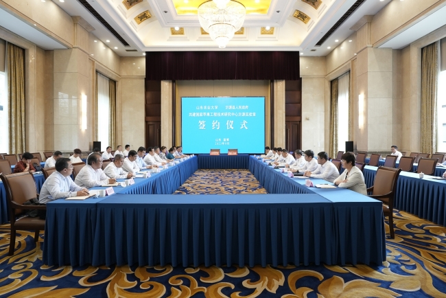 9月23日,山东农业大学与淄博市共建国家苹果工程技术研究中心沂源实验室签约仪式举行。淄博市委书记马晓磊,山东农业大学党委书记徐剑波出席签约仪式并讲话。山东省发展改革委二级巡视员王艳莉,淄博市委常委、副市长李新胜,淄博市委常委、秘书长李俊杰,市政协党组成员、副主席闫桂新,山东农业大学党委常委、副校长王勇,沂源县委书记边江风,县委副书记、县长张涛出席活动。