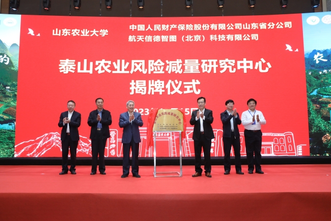 开幕式结束后,袁纯清和徐剑波共同为山东农业大学、中国人民财产保险股份有限公司山东省分公司、航天信德智图科技有限公司三方共建的“泰山农业风险减量研究中心”揭牌。