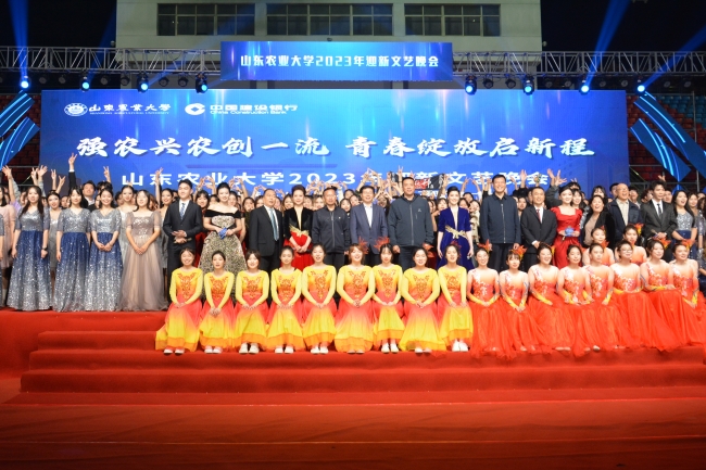 10月14日晚,学校在泮河校区体育场举行“强农兴农创一流,青春绽放启新程”2023年迎新文艺晚会。学校党委副书记、校长冷畅俭,建设银行泰安分行党委书记、行长李忠斌等与师生欢聚一起观看演出。