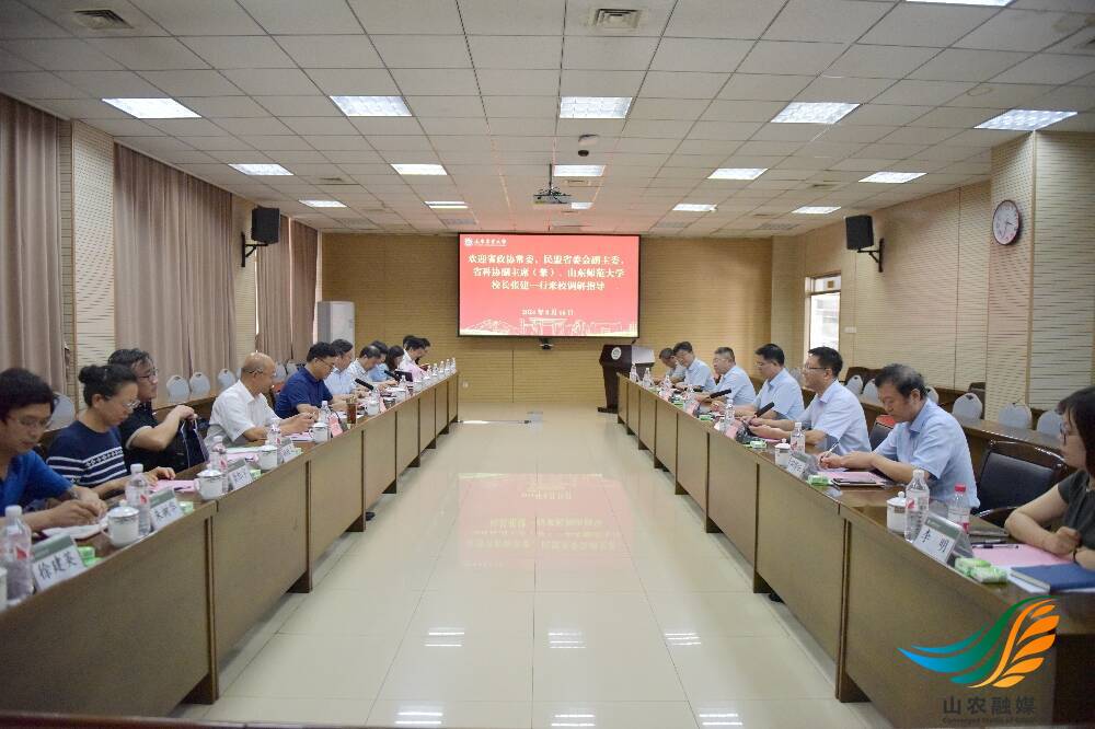 山农融媒8月17日讯 8月16日,山东省政协常委,民盟省委会副主委、省科协副主席(兼),山东师范大学校长张建率队,携民盟“811”项目调研专班深入山东农业大学进行实地调研指导,了解我校在“双一流”建设背景下的科技创新进展、教育教学改革及人才培养成效。党委副书记、校长冷畅俭接待调研专班一行,交流汇报“811”项目相关政策的具体落实情况及我校作物学学科建设措施制定与实施情况。省政协常委,民盟省委会秘书长刘加钊,市政协副主席、民盟泰安市委会主委孙岱峰等参加调研。