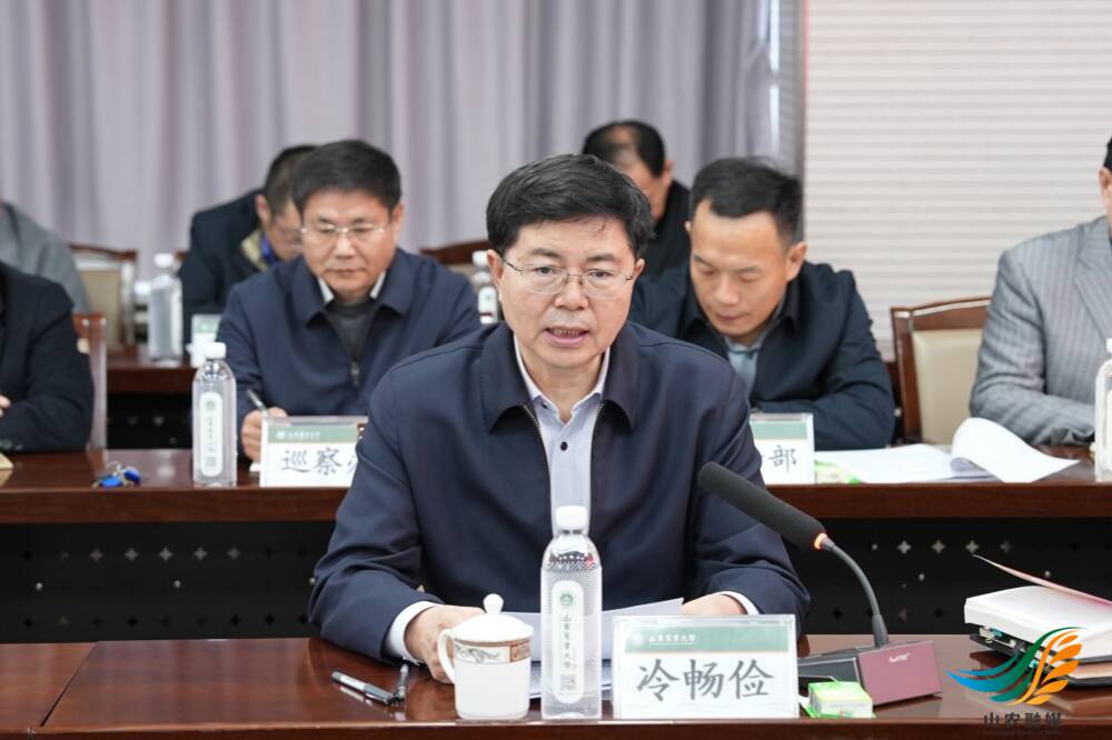 在会议交流环节,党委副书记、校长冷畅俭作重点发言,他表示,党的二十届四中全会站在党和国家事业发展全局的战略高度,系统总结历史性成就,科学擘画未来发展蓝图,为我们在新时代新征程上高质量谋划和推进“十五五”教育综合改革指明了前进方向。站在新起点,学校要牢牢把握高质量发展这一核心主题,主动对接农业强国建设战略需求,切实把全会精神深度融入办学治校各方面、全过程。要站在国家战略全局和全省发展大局的高度,科学把握“十五五”规划编制中的重大关系,确保编制出一份立足当下、着眼长远、特色鲜明、切实可行的高质量发展规划。要大力发扬钉钉子精神,主动对接国家“十五五”规划战略导向,紧扣“五大建设任务”和“五大改革任务”,结合学校发展阶段性特征,将全会精神切实转化为“冲一流”建设和推动学校高质量发展的具体行动,为中国式农业农村现代化建设,为农业强国强省建设提供“山农智慧”,作出“山农贡献”。