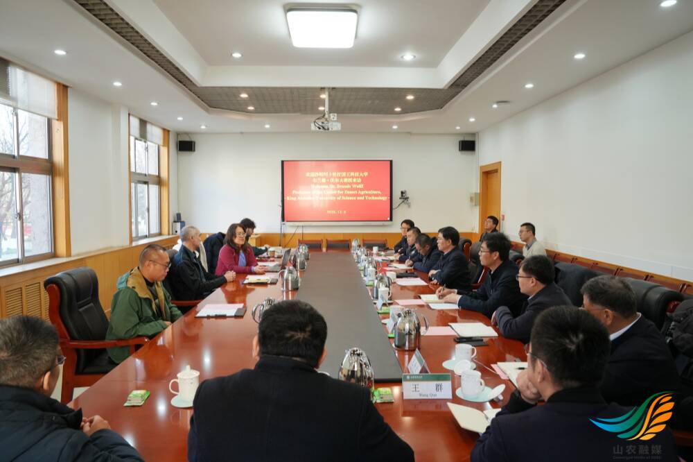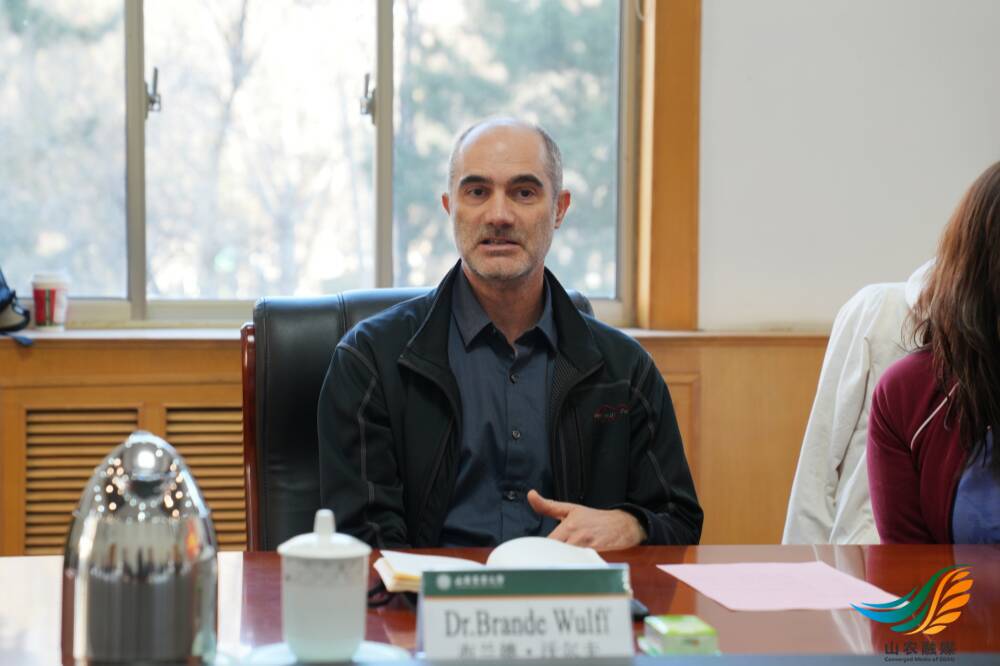 布兰德·沃尔夫教授对学校的接待表示感谢,详细介绍了其科研方向,并对山东农大在小麦育种领域的学科积淀、科研实力与平台建设水平作出高度赞扬。他表示,山东是中国的粮食大省,小麦育种全国重点实验室的先进设施与山东农大拥有的规模化试验田能为科研成果转化提供广阔空间。自己的研究领域与学校在小麦抗病、霉病防控等方面的优势高度契合,希望与学校专家、学者开展深度合作,联合组建研究团队,充分发挥各自优势加快抗病育种科研成果产出与转化应用,共同为小麦抗病育种发展贡献力量。