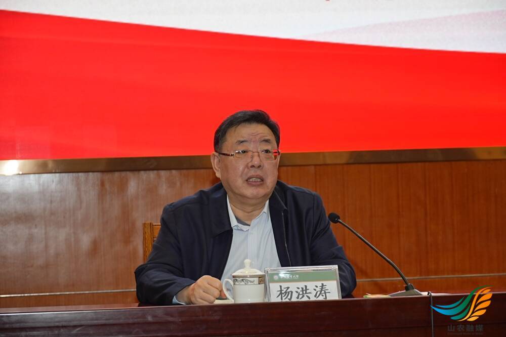 杨洪涛表示,立德树人关系党的事业后继有人,关系国家前途命运,是教育的根本任务。多年来,山东农业大学以党的创新理论为引领,打造高水平思政课,拓展思政育人新格局,取得积极成效。希望学校再接再厉,持续加强和改进学校思想政治工作,引导广大师生持之以恒用习近平新时代中国特色社会主义思想培根铸魂,努力培养让党放心、爱国奉献、担当民族复兴大任的时代新人。他勉励青年学生要立大志明大德,始终牢记“国之大者”,自觉把个人理想追求融入国家前途、民族命运和人民幸福之中,勇做走在新时代前列的奋斗者、开拓者。要敢担当善作为,充分发挥专业知识所长,主动对接地方需求,在服务社会中实现自我价值。要守底线修品行,将社会主义核心价值观内化于心、外化于行,涵养厚重扎实的品格底色。